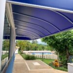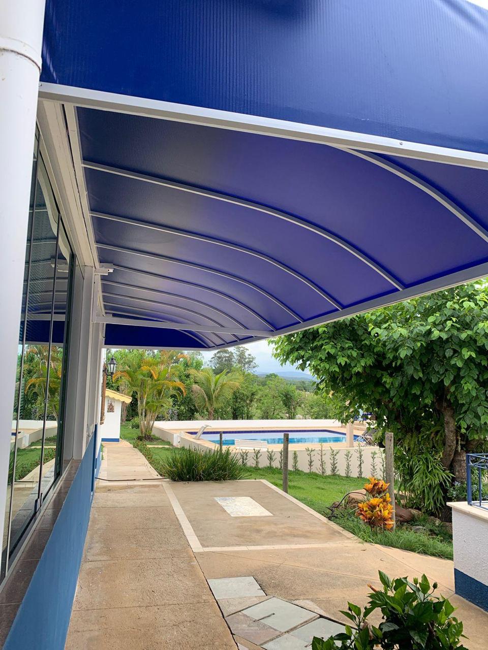 É um toldo de formato curvo ou arqueado, composto por estrutura metálica leve e lona tensionada. Pode ser fixo ou articulado (rebatível), permitindo recolhimento parcial da cobertura.